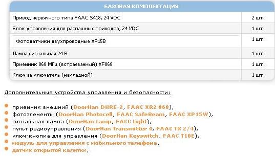 Комплектация FAAK S418
